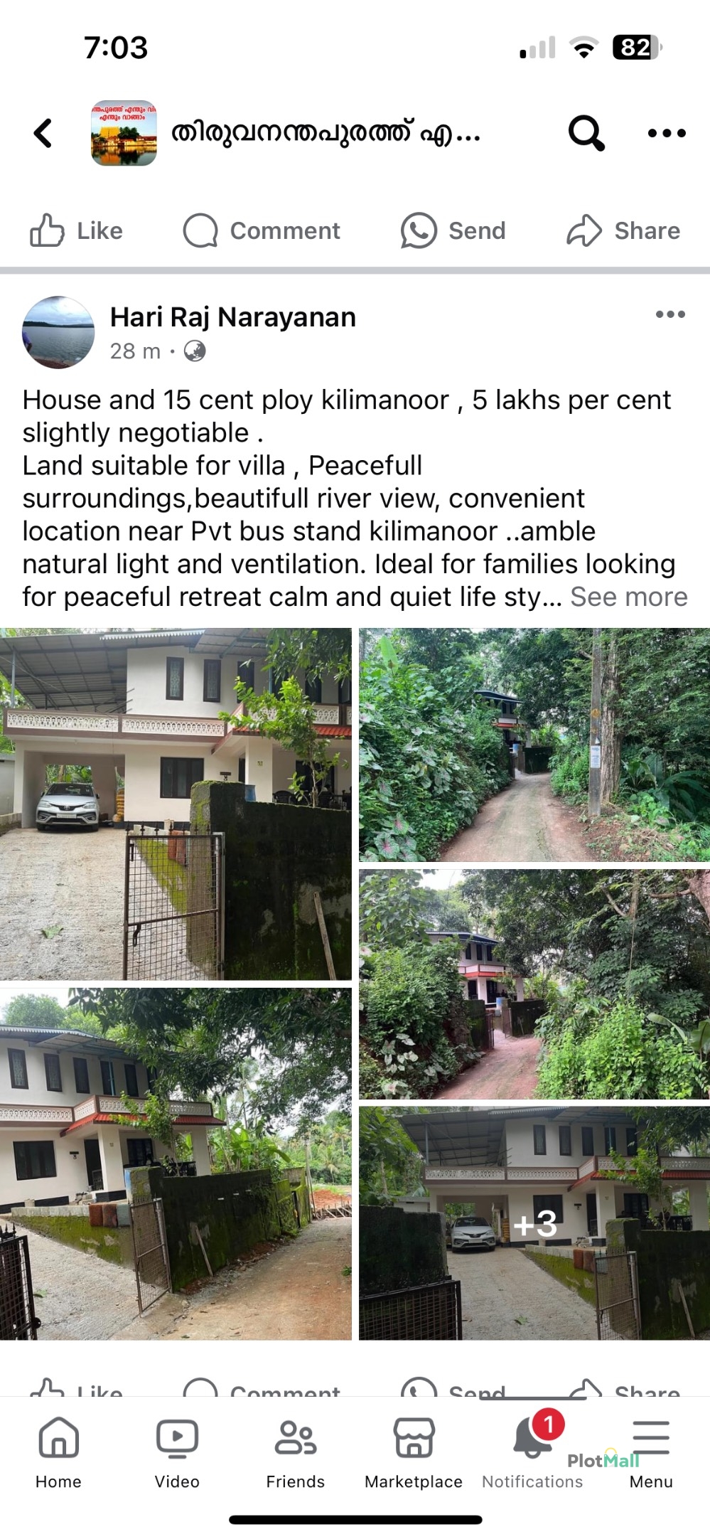 House plot kilimanoor 18.5 cent , 7 lakhs per cent slightly negotiable . Land suitable for villa , ayurveda heritage home, resort. Peacefull surroundings,beautifull river view, convenient location near Pvt bus stand kilimanoor ..amble natural light and ventilation. Ideal for families looking for peaceful retreat calm and quiet life style. Mobile : 9446513044