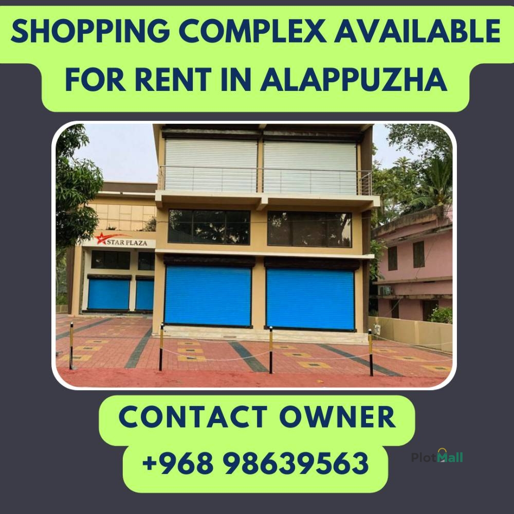 A shopping centre featuring seven rooms is for rent in Alappuzha. These spaces can be utilised as a bank, clinic, laboratory, shop, showroom, office,beauty parlour etc... Also Can be rented as whole or in part.Seven shops with a built-in mezzanine floor featuring a glass front and entrance are located on the ground floor. 2 halls approximately (1100 & 650 SQ FT + 275 sq ft lobby + 110 sq ft balcony) is located on the first floor.This building is close to markets, schools, colleges, banks, and hospitals.For 4-wheel and 2-wheel parking, the entire interlocking is done with solid stones. In addition, urinals and separate bathroom facilities for men and women have been built in all floors. There is also a fire and safety system available.This complex is perfect if you want to set up an IT academy or startup. And it is easily accessible from everywhere and is situated in a pleasant area.This building is situated near to the Muthukulam bus road side on the Kayamkulam-Karthikappally route. price is negotiable.